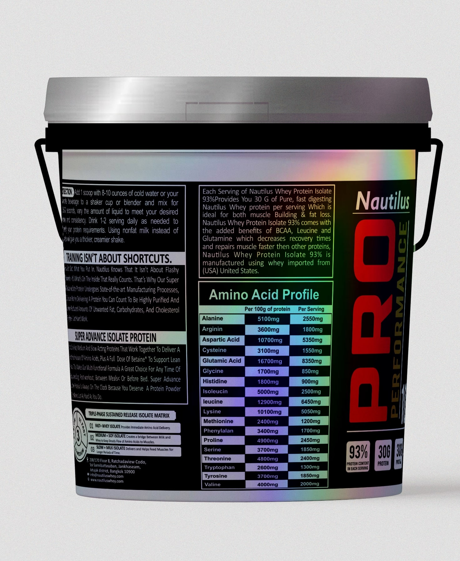 Each Serving of Nautilus Whey Protein Isolate 93% provides you 30 G pure, Fast digesting Nautilus Whey Protein per Serving which Is Ideal for both Muscle Building & Fat Loss. Nautilus Whey Protein Isolate 93% comes with the added benefits of BCAA, Leucine and Glutamine which decreases recovery times and repairs muscle faster than other proteins, Nautilus Whey Protein Isolate 93% is manufactured using whey imported from (USA) the United States.